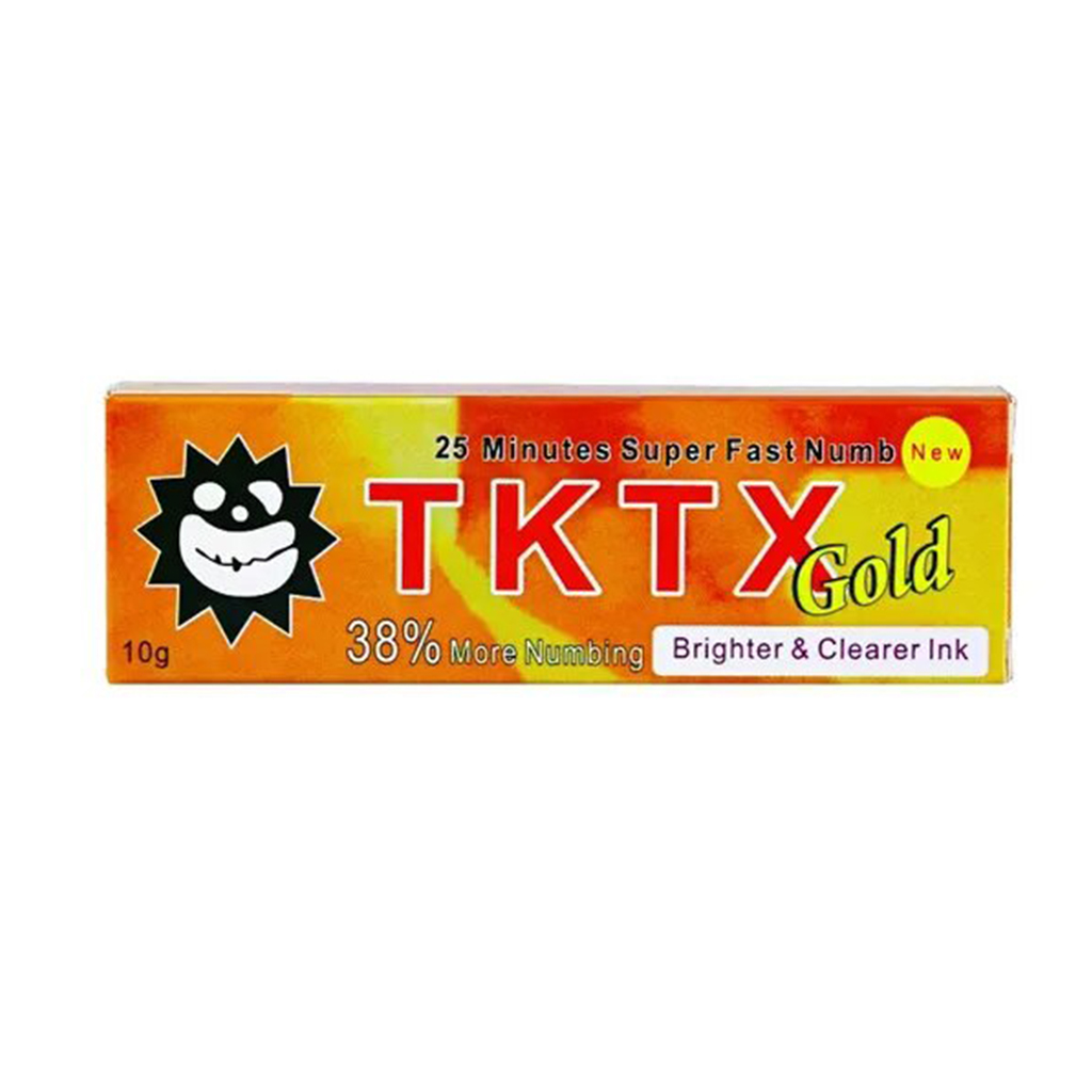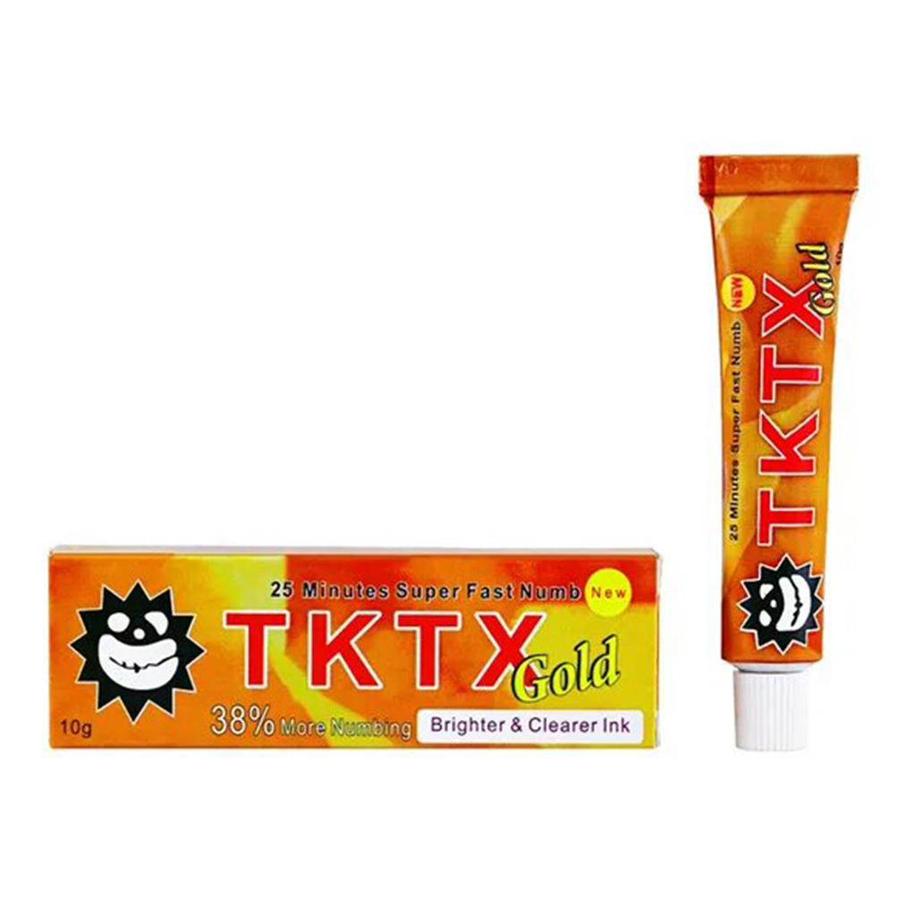 TKTX Gold 38% Numbing Cream — Experience powerful, long-lasting numbness with this premium anesthetic formula. Specially formulated for tattoos, laser hair removal, microblading, and waxing, this fast-acting cream provides up to 4–6 hours of relief.