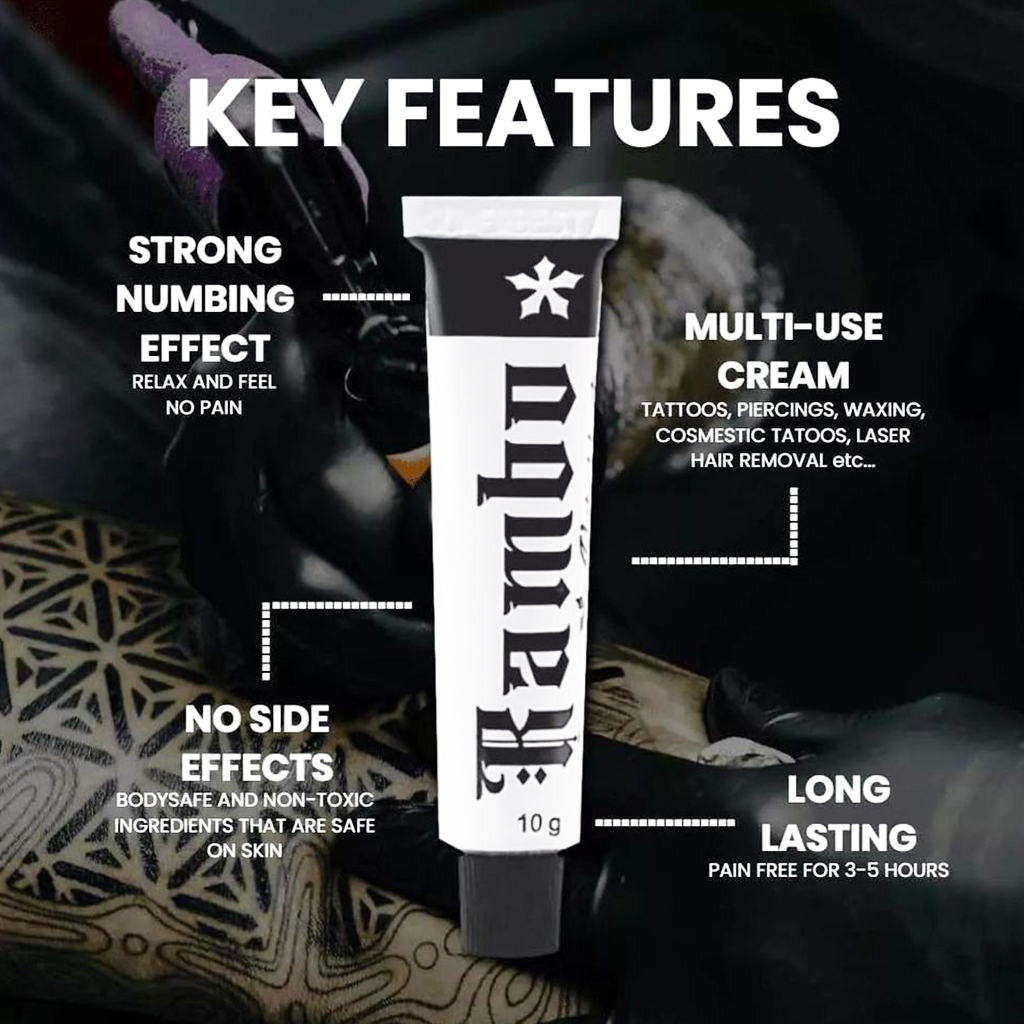 Don’t let pain hold you back from expressing your unique style! Grab your Rambo 75% Tattoo Numbing Cream NOW! This top-quality product is specifically designed to provide pain relief during semi-permanent makeup application and various skin treatments such as tattooing, laser hair removal, waxing, and more. It’s reliable, safe, and effective, with a lifespan of 2 years. Enjoy the freedom of pain-free semi-permanent makeup and skin treatments without worry. Click “Add to Cart” now and experience the Rambo difference today!